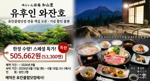 유후인 와잔호 특별플랜 오픈(샤브샤브 플랜으로 요금을 인하하였습니다.)