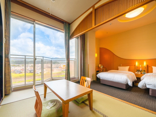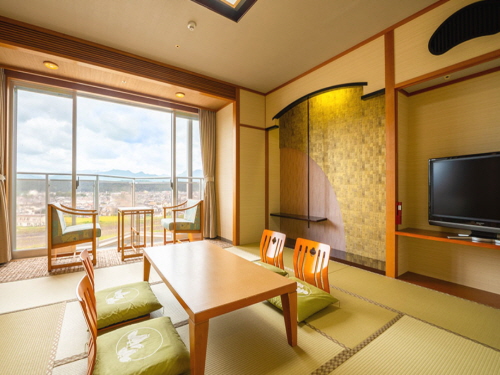 산과 들이 펼쳐진 사계절의 자연과 히타 미쿠마 강(三隈川)을 바라보며, 느긋하게 온천을 즐기기에 좋다. 리버뷰가 펼쳐지는 넓은 객실은 가족 또는 연인과 더욱이 운치 있는 하루를 보낼 수 있다. 맛은 물론 신선함과 건강함을 가득 담은 조식 뷔페와 계절의 제철 식재료를 사용한 가이세키 정식은 호텔의 자랑이다. 또한 코인세탁실, 연회장, 키즈룸, 탁구 코너 등 다양한 시설이 마련되어 있어 편안한 휴식과 즐거움을 모두 느낄 수 있다. |