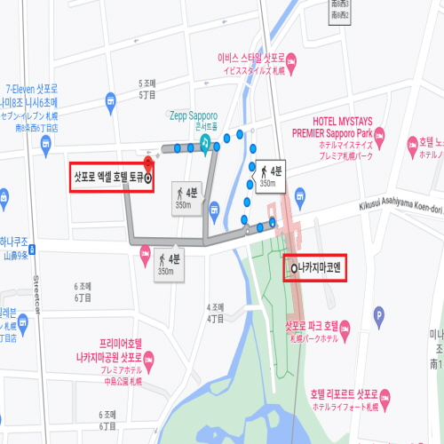 나카지마코엔 역에서 도보로 약 4분 거리에 위치한 삿포로 엑셀 호텔 도큐는 삿포로 역과 호텔 사이에 송영이 가능하여 편리하게 이동할 수 있다. 짐이 많아도 넓고 여유로운 객실은 가족이나 여러 명이 머물기에 좋아 인기가 있다. 또한 고급스러운 분위기의 레스토랑에서 홋카이도의 맛을 가득 담은 맛있는 요리를 맛볼 수 있으며 19~20층에 위치한 최상층 프리미엄 객실에서는 삿포로의 멋진 조망을 즐길 수 있는 욕실도 마련되어 있다. |