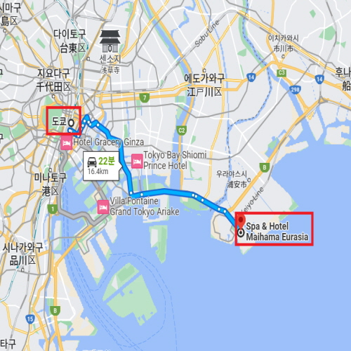 스파&호텔 마이하마 유라시아는 마이하마 지역 유일의 천연 온천 노천탕을 보유한 호텔이다. 도쿄역에서 차로 약 20분 거리에 위치해 있으며 도심에서의 접근성은 물론 주위의 자연과 바다, 테마파크 등 좋은 입지의 호텔이다. 또한 JR마이하마역(舞浜駅)에서 호텔까지 송영도 가능하여 편리하게 이동할 수 있다. 그 밖에도 7가지 종류의 탕과 3종류의 사우나가 마련되어 있고 멋진 경치와 조망과 더불어 원천카케나가시 방식의 노천탕은 호텔의 자랑이다. |