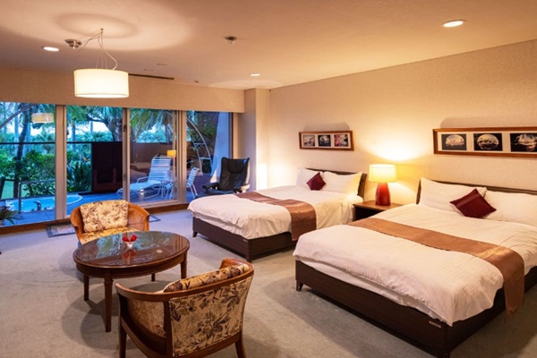 원천에서 끌어 온 온천으로 모래를 데우고 온천에는 디톡스 효과도 있어 입욕 후에는 장시간 몸이 따뜻해진다. 객실은 기본 타입부터 귀빈실 타입까지 다양하게 준비되어 있어 인원 및 상황에 맞춰 선택 가능하며 거의 모든 객실에서 바다를 조망할 수 있다. |