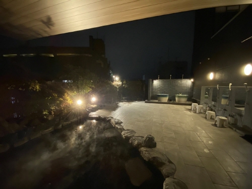 오쿠도고에서부터 끌어온 온천수를 사용하는 온천이 유명하며 전망노천온천도 마련되어있습니다. |