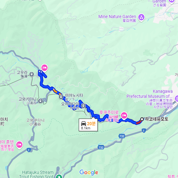 하코네 유모토 역에서 차로 약 20분 소요