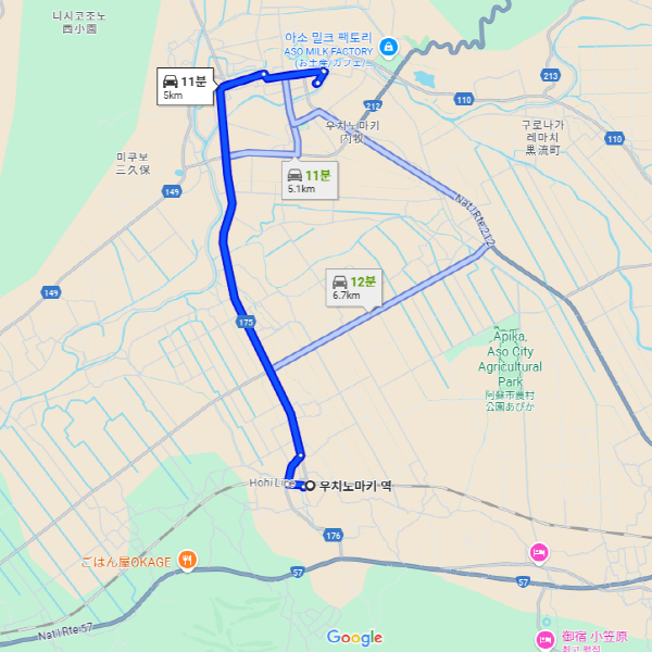 우치노마키 역에서 차로 약 11분 소요