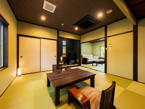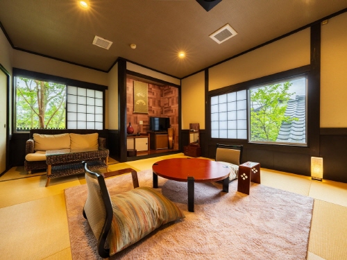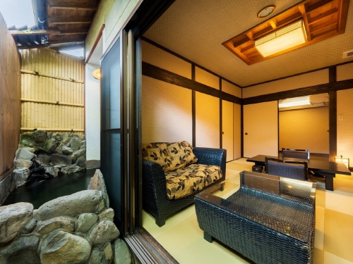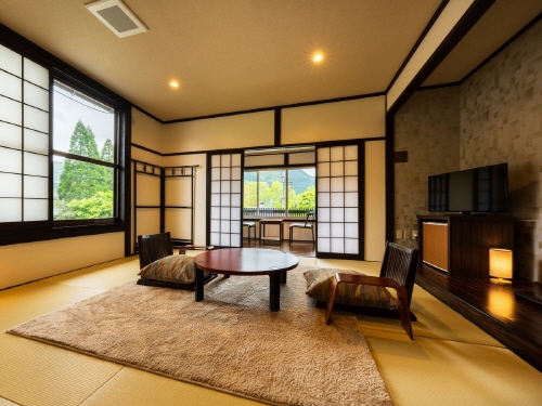 | 기타 | -료치쿠에는 대욕장은 없으며 전세 가족탕이 총 4개가 있다. -숙박객에 한해 24시간 비어 있을 경우 안에서 잠근 후 언제든 이용 가능하다. -노천온천 2개, 실내온천 2개 |