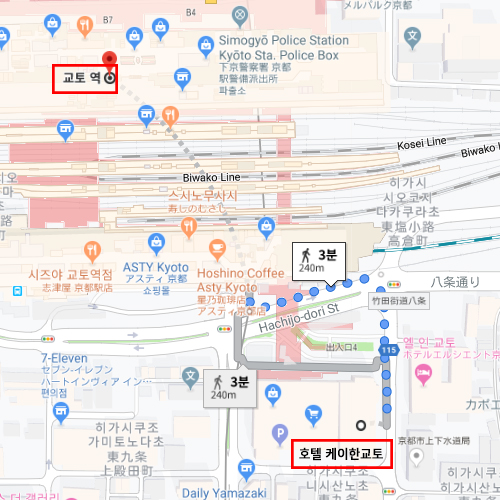 숙박지 주변교토역에서 도보 약 3분 소요 |