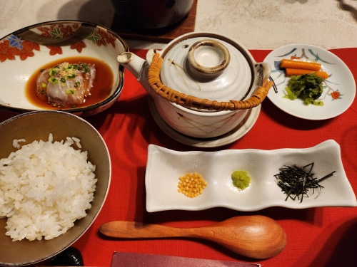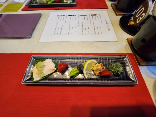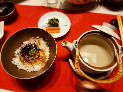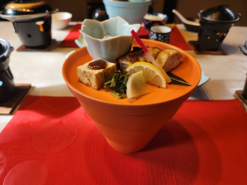 | 석식 | 있음 / 가이세키 정식 / 운영시간 18:00 ~ 18:30 / 특이사항 : 식사처 식사 |