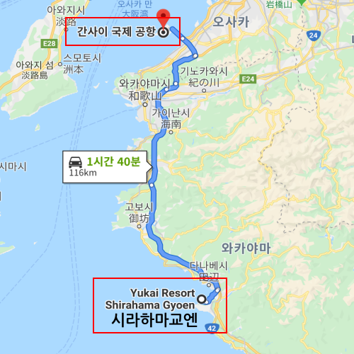 공항 기준간사이 공항에서 차로 약 1시간 40분 소요 |