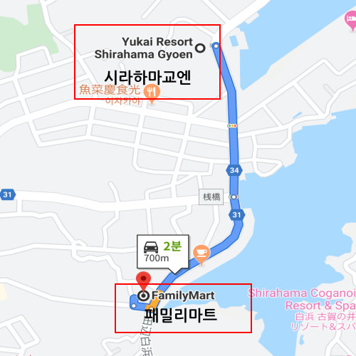 | 시설 주변 정보 | ★ 편의점 세븐일레븐 아리마온센점 (ファミリーマート白浜垣谷店) : 차로 약 2분 소요. - 영업시간 ; 24시간 - 전화번호 : 0739-82-3848 |