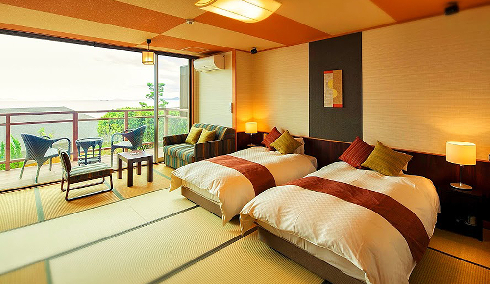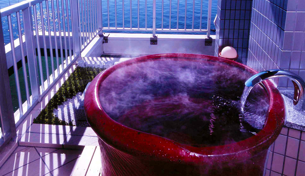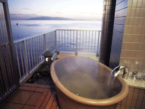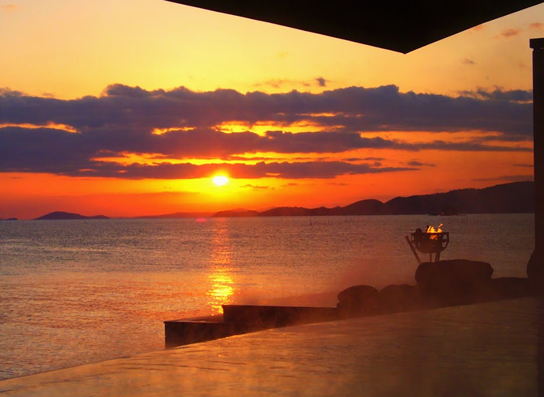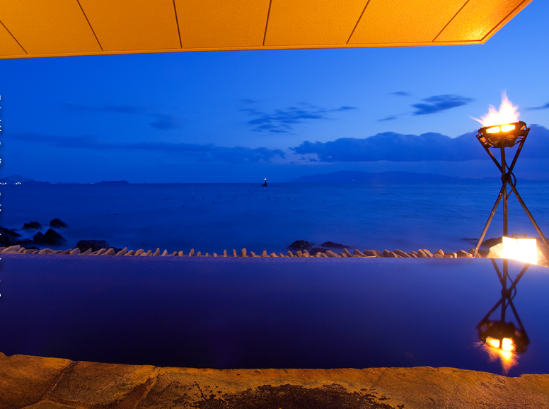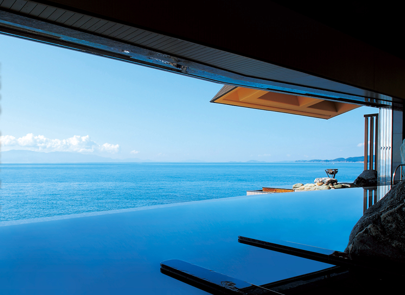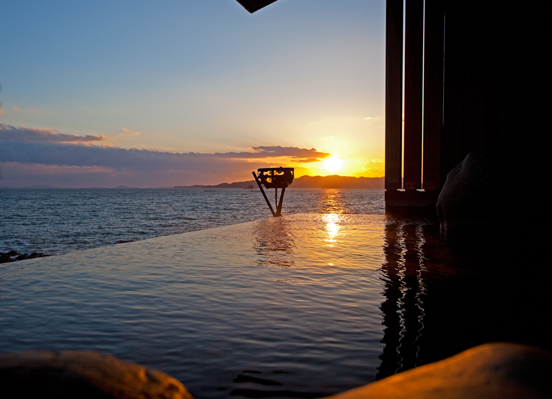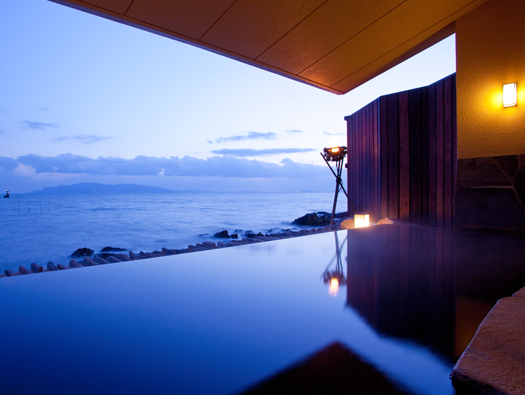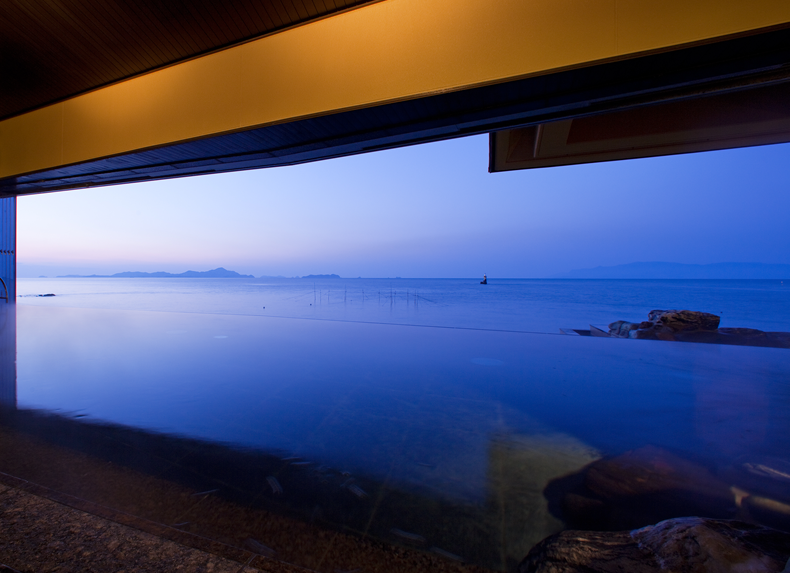 서일본 최대규모의 경치를 즐기며 온천을 즐길 수 있는 긴파소 료칸. 긴파소 료칸은 바다와 밤하늘을 컨셉으로 잡고 만들어진 료칸이다. 긴파소 료칸의 창립자는 인도네시아로 신혼여행을 갔을 적에 경험한 것을 토대로 온천과 바다가 접목된 신개념의 온천시설을 만들고자 결심했다고 한다. 이처럼 그의 신념이 가득담긴 긴파소 료칸의 온천시설은 어디에서나 온천에 들어가면 마치 바다에 들어온 것과 같은 느낌을 받을 수 있다. 또한 온천물에 반사된 하늘을 바라보며 환상적인 온천을 즐길 수 있다. 그밖에도 이곳의 객실 중 특별실에는 천공노천온천이 포함되어 있어 바다를 바라보며 온천을 즐기고, 거실에 위치하고 있는 넓은 창을 통해 마음껏 바다를 바라볼 수 있다. 이처럼 풍경을 즐기며 온천을 즐기고 싶은 분에게 추천하고 싶은 료칸이다. |