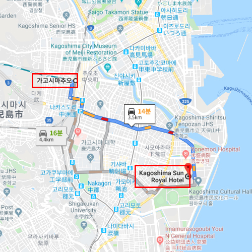 가고시마 선로얄 호텔은 엎어지면 코닿을 거리에 있는 사쿠라지마를 바라보며 입욕을 할 수 있는 최상층의 파노라마 대욕장이 인기인 호텔이다. 바로 바다 앞에 있어 호텔에서 바라보는 전경이 매우 뛰어나며, 가고시마중앙역에서 부터 텐몬칸 쇼핑거리를 거쳐 호텔까지 무료 셔틀버스도 운행하고 있어 자유여행객들이 하루 묵어가며 여행을 하기에 좋은 곳이다. 일곱가지 색으로 변하는 매력있는 사쿠라지마를 바라보며 전망온천과 사우나를 즐기면서 저렴한 가격으로 편안한 숙박을 하고자하는 여행객들에게 추천하는 호텔이다. |