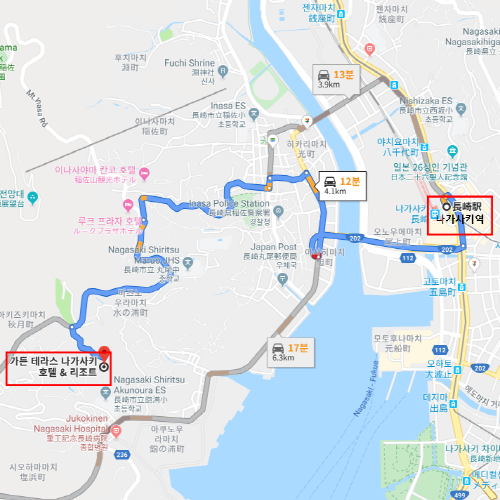 숙박지 주변나가사키역에서 차로 약 12분 소요 |