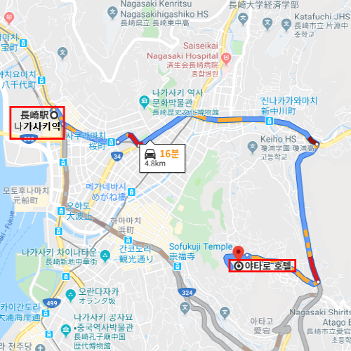 항구의 도시 나가사키의 거리가 한눈에 들어오는 야타로는 산 꼭대기에 위치하고 있어 본관 4층의 전망실에서는 밤에는 천만달러의 야경을, 낮에는 탁 트인 나가사키 시내의 전경을 바라볼 수 있다. 옛 느낌을 그대로 간직한 본관과 새로이 신축된 신관인 남관으로 이루어져있다. 야타로 본관과 야타로 남관은 서로 마주하고 있으며 본관은 6층 건물로 60객실, 남관은 10층 건물로 133실로 이루어져 있는 대형 료칸이다. 노천온천과 전망온천, 실내 대욕장, 레스토랑 등 많은 인원도 여유롭게 이용할 수 있도록 훌륭한 시설을 갖추고 있다. 나가사키 시내의 멋진 전경과 함께 일본식 다다미 객실에서 숙박을 하며 나가사키 지역의 본토 재료를 사용한 가이세키까지 맛보기를 원한다면 이 곳 야타로 본관/남관을 추천한다. |