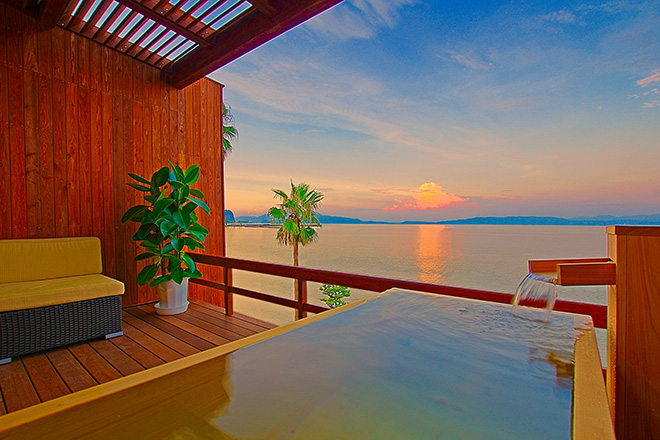 -이브스키 코랄비치호텔은 100년 전통을 가진 이브스키의 온천호텔로, 조용하고 잔잔한 이브스키의 바다와 가이세키 코스를 경험할 수 있는 숙소이다. 옛 느낌을 그대로 간직하고 있는 호텔 내부와 일본식 다다미 객실, 그리고 다양하게 꾸며진 노천온천 대욕장 등 일본 느낌 충만한 시설들로서 전통 일본 여행의 진미를 느낄 수 있다. 바다가 펼쳐져 보이는 테라스쪽에 개인전용 노천온천을 만들어 새롭게 리뉴얼 된 노천온천 포함 화실이 가장 인기가 많으며, 저 멀리 수평선까지 보이는 전경을 원한다면 6층 최고층인 프리미엄플로어도 지정하여 숙박할 수 있다. 또한, 자원이 풍부한 인근 항에서 나오는 신선한 재료들로 만든 가이세키 역시 호평을 얻고 있다. 호텔 층 프론트에 문의하면 1인 1400엔으로 호텔 앞 해변에서 자연적으로 김이 나는 모래찜질을 할 수 있도록 전용유카타, 수건, 파우치등을 준비해주며 도보 5분거리의 해변까지 무료송영을 제공한다. 호텔의 모토인 안심하고 따뜻한 느낌의 온천호텔과 전망노천온천, 이브스키 전통의 가이세키 코스요리 이 세가지를 모두 이 곳에서 경험 해 보는것은 어떨까. |