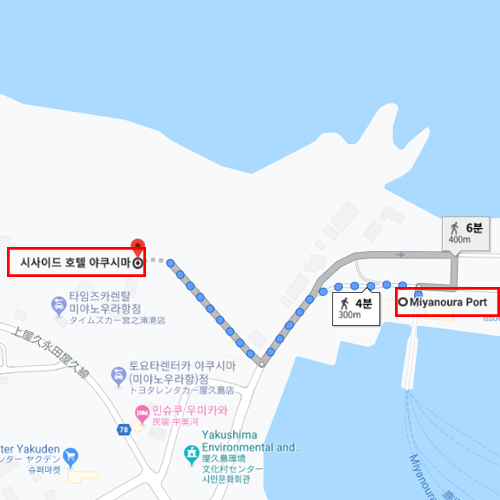 | -등산용 도시락 신청 : 전날까지 프론트로 접수가능 -티라운지 (신관 1층) : 커피, 홍차, 음료수 등 7:00~22:00 -매점 (신관 1층) : 16:00~22:00 / 익일 7:00~10:00 [교통안내] 가고시마 공항에서 국내선으로 야쿠시마 공항으로 이동 → 야쿠시마 공항에서 차로 약 20분 사쿠라지마 페리 가고시마항에서 미야노우라 항(宮之浦港) 배로 이동 → 미야노우라 항에서 도보 약 4분 소요 |