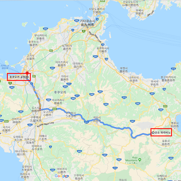 공항 기준후쿠오카 공항에서 차로 약 1시간 30분소요 |