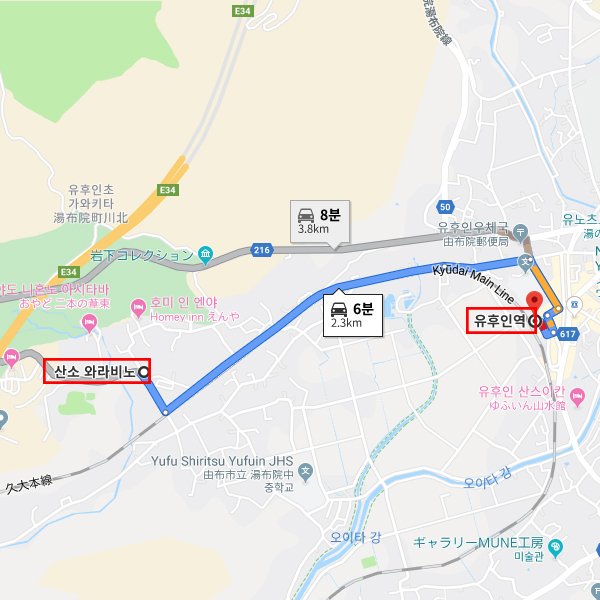 숙박지 주변유후인역에서 차로 약 6분소요 |