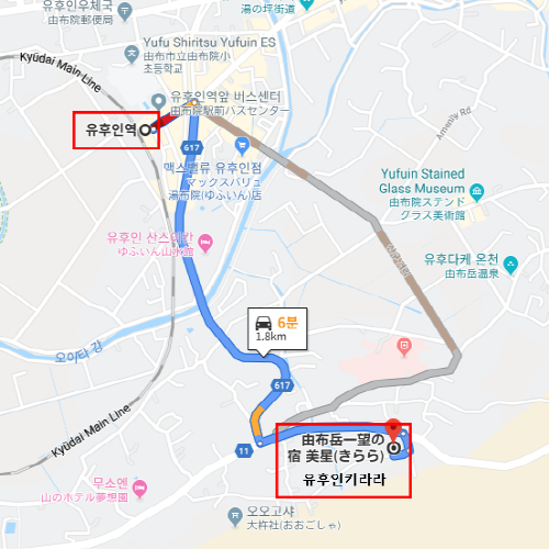 숙박지 주변유후인 역에서 차로 약 6분 소요 |