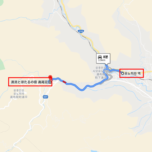 유노히라 온천가의 입구에 위치한 타카오소는 사계절 각기 다른 풍경을 즐길 수 있는 료칸이다. 봄에는 푸르른 신록, 여름에는 반딧불이, 가을에는 단풍, 겨울에는 눈쌓인 풍경 등 사계절 내내 훌륭한 풍경을 자랑한다. 객실은 일본의 전통미를 느낄 수 있는 인테리어로 포근한 분위기의 객실이다. 주변이 모두 자연으로 둘러싸여 있어 2층과 1층 어느 객실에서든 자연풍경을 바라보며 느긋하게 쉴 수 있다. 온천은 노천탕과 실내탕 두곳이 준비되어 있으며, 예약제로 한 번에 30분씩 이용 가능하다. 노천탕에서는 강물 소리를 들으며 느긋한 온천을 즐길 수 있고, 실내탕은 히노키를 사용한 욕조로, 은은한 히노키의 향기와 함께 몸에 쌓인 피로를 풀 수 있다. 식사는 지역에서 나는 신선한 식재료만을 엄선하여 사용한 요리로 분고규, 전갱이, 은어 등 오이타현의 특산물을 맛 볼 수 있다. 자연 속의 느긋한 휴식을 원하는 여행객에게 추천하고 싶은 료칸이다. |