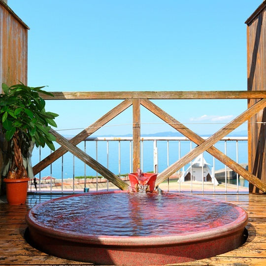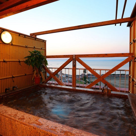 합리적인 가격을 자랑하는 츠타야료칸은 사계절 아름다운 해변을 배경으로 지어진 창업 250여 년이 된 전통료칸이다. 낮에는 눈 앞에 펼쳐지는 푸른 바다와 파도 소리를 느낄 수가 있고 저녁 시간이 되면 바다에 가라앉는 석양을 객실에서 만끽할 수 있는 것이 장점이다. 츠타야 료칸은 5가지의 전세 노천온천이 있으며 시간만 예약하면 하루에 횟수제한 없이 이용할 수 있다. 각각의 전세 노천온천마다 해변을 구경 할 수가 있어 석양이 수평선 너머로 질 때의 아름다운 광경을 노천 온천에서 바라볼 수 있다. 그 아름다운 풍경과 시원한 바닷바람을 맞으며 일상에 지친 몸을 따뜻한 노천온천에서 회복하는 것도 좋다. 또한 전세 노천온천 이외에도, 150평 대욕장이 있으며 그 넓은 공간에서 가족과 함께 여유로운 온천욕을 즐기는 것 또한 좋다. 석식 식사로는 가이세키 요리로써 그날 갓 잡은 각종 신선한 해산물을 사용하여 여행객들의 입맛을 사로잡으며, 조식 식사로는 일본식 정식이 준비된다. 또한 츠타야료칸에서는 이러한 신선한 재료를 사용하여 여행객에게 건강하고 기분 좋은 하루를 시작했으면 하는 바람으로 대접하고 있다. 가족과 함께, 친구와 함께, 남녀노소를 불문하고 모두에게 인기 있는 료칸이다. |