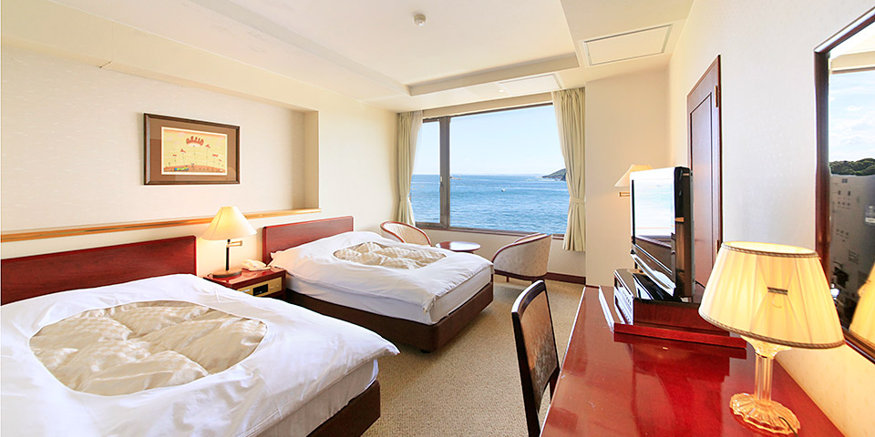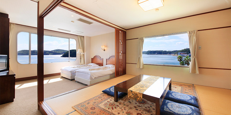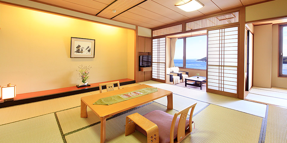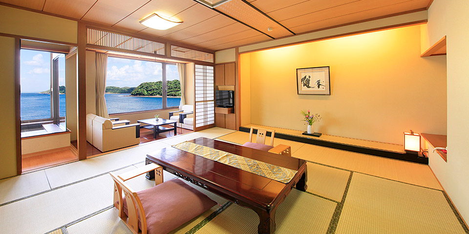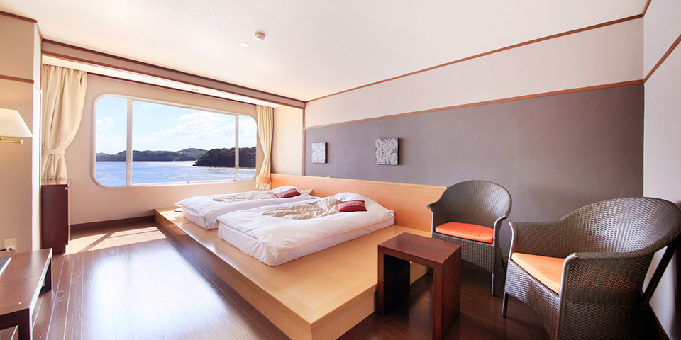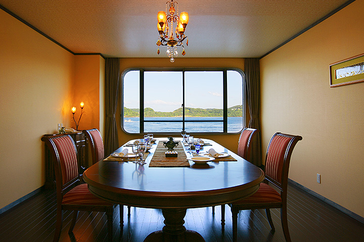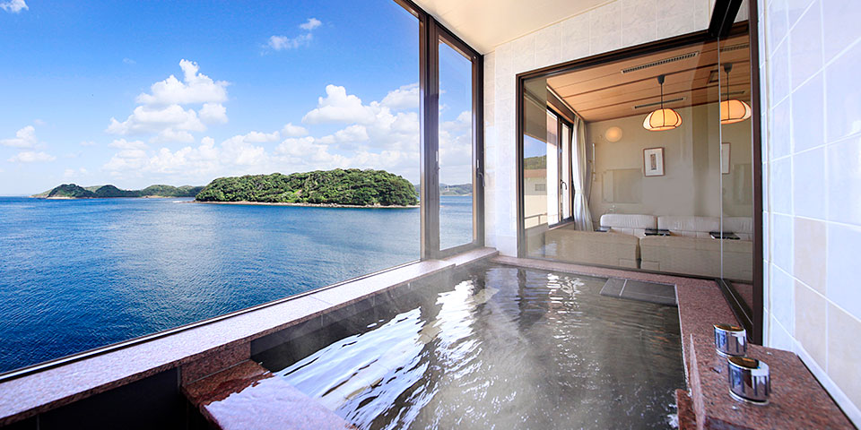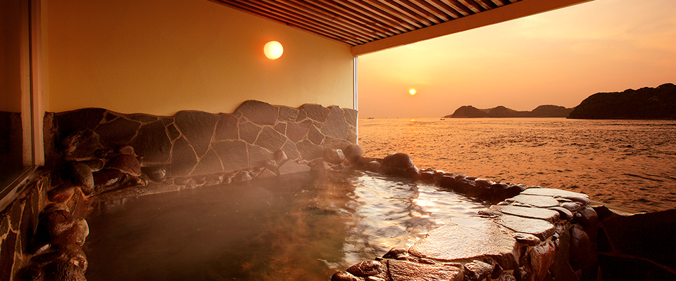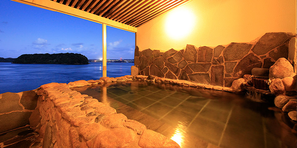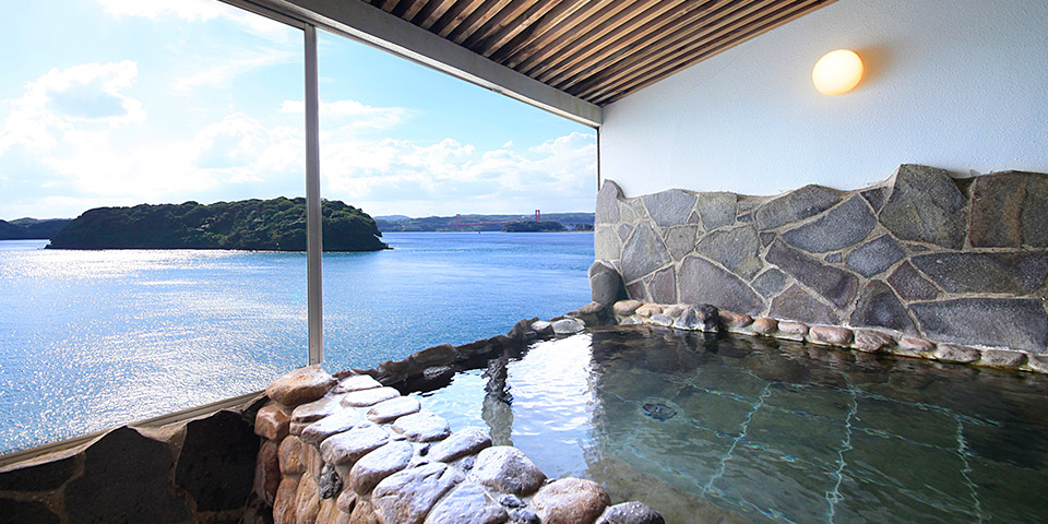 항구도시인 히라도에 위치한 히라도 카이죠 호텔. 카이죠호텔에는 히라도의 명물이라고 할 수 있는 온천탕이 구비되어 있는데, 개방감 넘치는 노천온천은 마치 바다에 떠 있는 느낌을 주어 관광객에게 인기가 좋다. 노천온천 뿐만 아니라 실내 대욕장도 훌륭한 시설인데, 실내 대욕장에는 온천욕을 하면서 볼 수 있는 수족관이 구비되어 있다. 노천온천 및 대욕장 이외에도 그룹이서 이용할 수 있는 전세온천도 준비되어 있다. 카이죠호텔의 모든 객실은 전망이 탁 트인것이 특징인데, 바다를 바라볼 수 있는 것이 매우 아름다워서 인기가 많다. 일부 객실은 바다를 바라보며 목욕할 수 있는 전망욕조가 구비되어 있어 환상적인 경치를 보면서 휴식을 취하고 싶은 숙박객에게 강력 추천하는 호텔이다. |