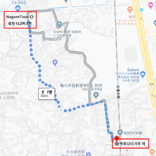 숙박지 주변벳부다이가쿠역에서 도보 약 7분 소요 |