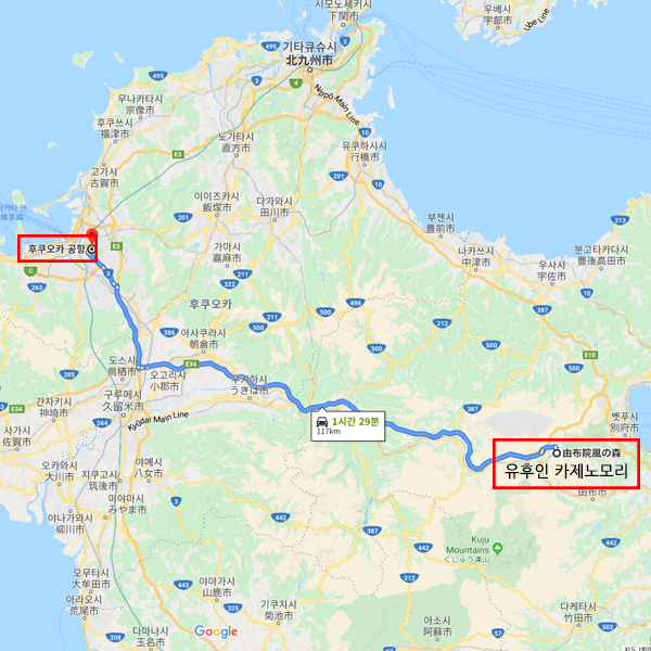 공항 기준후쿠오카 공항에서 차로 약 1시간 30분소요 |