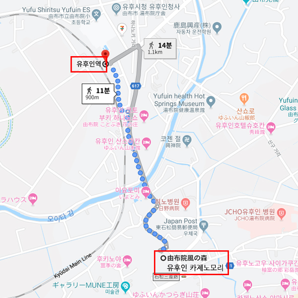 | 시설 주변 정보 | ★ 코스모스 면세 드럭스토어(ディスカウントドラッグコスモス湯布院店) : 도보 약 20분 소요 - 영업시간: 10:00~21:00 - 전화번호: 0977-28-2911 ★ 로손 편의점 유후인 중앙점(ローソン 湯布院中央店) : 도보 약 14분 소요 - 영업시간: 24시간 - 전화번호: 0977-28-8350 ★유노츠보 거리(湯の坪街道) : 도보 약 17분 소요 |