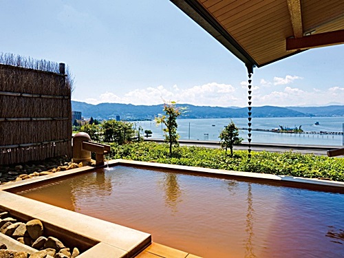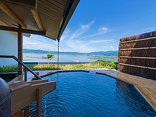 소우센노야도 스하쿠는 일본의 온천지역으로 잘 알려진 가미스와 온천 내에서도 유일하게 관내에 두 개의 온천 수원을 가진 이색적인 료칸이다. 갈색의 붉은 기가 있는 슈이로노 이즈미(朱の泉)탕에는 칼슘과 마그네슘, 나트륨 성분이 풍부하며, 무색 무취의 투명한 온천수를 가진 시로노 이즈미(白の泉)는 약알칼리성의 온천수로 피부미용과 피로회복에 탁월한 효능을 가지고 있다. 더욱 좋은 점은, 노천탕인 호우보우노유(峰望の湯)와 코초우노유(湖眺の湯)에서는 아름다운 스와호를 감상하면서 노곤노곤하게 온천욕을 즐기며 피로를 풀 수 있다는 것이다. 소우센노야도 스하쿠는 방문하는 손님들에게 현지에서 조달한 신선한 식재료로 일본의 맛이 듬뿍 든 요리를 제공한다. 또한 일반 손님들 뿐만이 아니라 몸이 불편한 손님들을 위해서도 객실의 입구는 넓게, 객실 안에서도 단차 없이 휠체어를 타고도 편하게 이동할 수 있도록 하여, 곳곳에 고객들을 생각한 설계가 돋보이는 숙소이다. |
