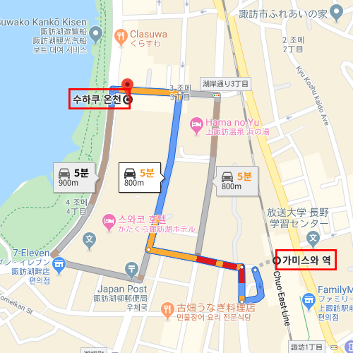 | 대중노천온천 | 있음 / 운영시간 13:00 ~ 10:00 / 특이사항 : 심야시간 (24:00~05:00) 이용불가. 남/여 교대 이용. 이용 가능 시간 확인 필수. |