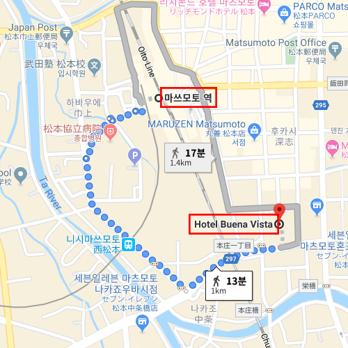 호텔 부에나 비스타는 역사가 깊은 마츠모토에 있는 교통이 편리한 호텔이다. 총 190개의 객실을 보유하고 있으며, 6개 타입의 객실이 있다. 중식, 일본식, 프랑스식의 다양한 레스토랑이 있어 다양한 국가에서 오는 손님들의 수요에 대응하고 있으며, 깔끔한 시설로 방문객들에게 좋은 평가를 받고 있는 호텔이다. 일본 혼슈 나가노현의 마츠모토시는 오래된 성이 많은 일본에서도 4대 고성으로 꼽히는 마츠모토성이 있는 도시이다. 1504년에 오가사와라 가문에서 만든 마츠모토성은 일본의 보물급 문화재로 관리되고 있다. 마츠모토성의 천수각은 히메지성과 함께 2개밖에 남아있지 않은 5층 천수각으로, 성내에는 에도시대에 사용된 총기와 화포와 총기류 등이 전시되어 있어 방문객들에게 볼거리를 제공한다. |