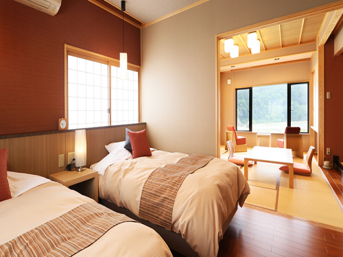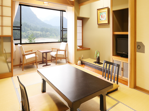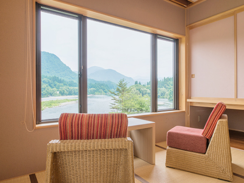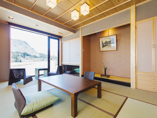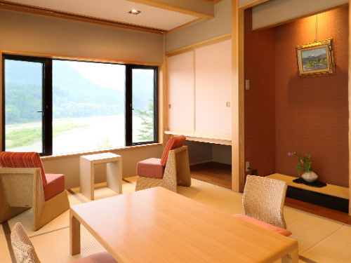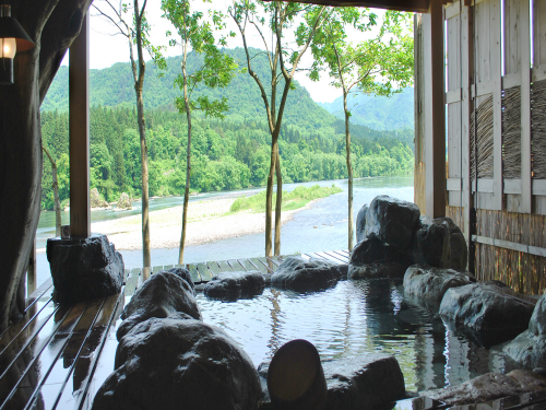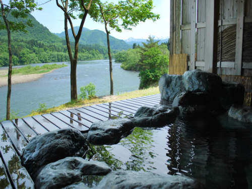 기린잔온천의 전망 좋은 전통료칸으로 깔끔한 일본 스타일 객실에 모던함도 더하고 있다. 일반 객실은 안정감 있는 객실로 준비되어 있고, 노천탕이 포함된 전망 객실은 모던함도 추가해 여유있고 조화로운 객실로서 숙박객들에게 인기가 있다. 각 객실 외에도 개방형 대욕장과 노천온천탕이 별도로 구비되어 있어, 온천욕을 즐기기에 부족함이 없으며, 전세탕도 유료로 별도 운영하고 있으므로 가족 단위로 별도 이용을 희망하는 고객에게도 적당하다. 니가타의 대자연에서 생산된 제철 재료를 이용한 맛있는 가이세키 요리도 이 료칸의 인기 있는 장점중에 하나이다. 객실 옆을 흐르는 아가노 강을 바라보며 한가로이 여유있는 휴식을 즐기며, 노천온천욕을 즐겨보자. |