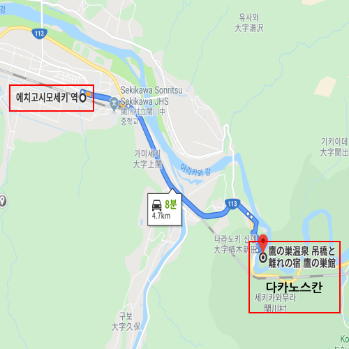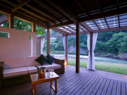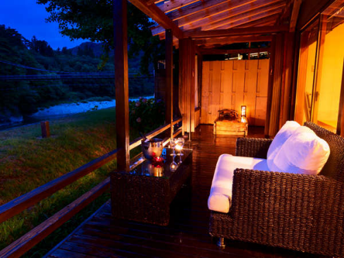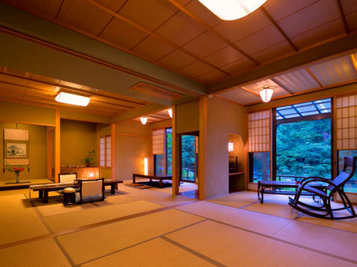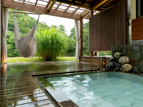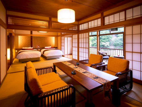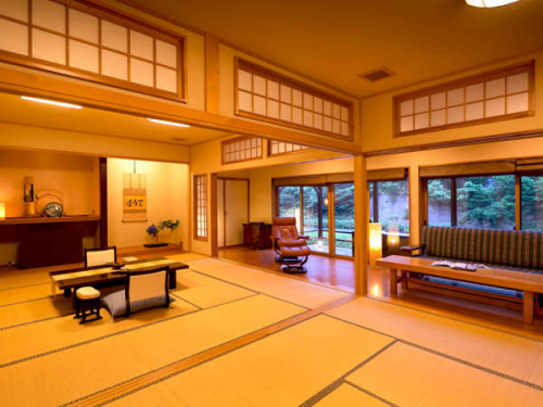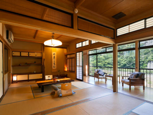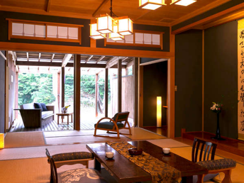 전 객실 노천탕이 포함되어 있는 한적한 대자연에 둘러싸인 고급스러운 분위기의 전통 료칸이다. 각 객실은 24시간 온천욕을 즐길 수 있으며, 프라이빗한 시간을 보낼 수 있다. 매우 여유 있는 사이즈의 객실들로 구성 되어 있어서 가족 단위나 인원이 많은 타입의 숙박객이 이용하기에도 좋을듯 하다. 자연에 둘러싸여 밤하늘의 별을 감상하며 한적하고 여유있는 시간을 보낼 수 있다. 깔끔하고 고집스런 요리장의 정성이 담긴 가이세키 코스 요리는 일본의 맛을 최대한 살리기 위해 노력했다. 료칸까지의 이동은 렌터카 이용이 편리하나 어려운 경우는 대중교통을 이용해 JR 에치고시모세키 역까지만 이동하면 료칸에서 송영서비스를 운영하고 있다. |
