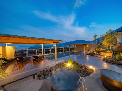 벳푸의 칸나와 온천 지역 고지대에 자리한 전통과 현대가 공존하는 고급 온천 료칸입니다. 넓은 부지 안에는 노가쿠당과 초가 지붕의 다실이 어우러진 아름다운 정원이 펼쳐져 있어, 마치 일본 옛 풍경 속으로 들어온 듯한 감각을 선사합니다. 전 객실에는 100% 원천에서 직접 끌어올린 실내탕 또는 반노천탕이 완비되어 있으며, 일부 객실은 실내탕과 노천탕 모두를 갖추고 있어 객실 안에서 언제든지 프라이빗하게 온천욕을 즐길 수 있습니다. 또한 공용 대욕장 및 전망 노천탕에서도 칸나와 특유의 뽀얀 온천수와 자연 풍경을 만끽할 수 있습니다. 식사는 철판구이 전문 레스토랑 카에데와 계절 가이세키 코스 요리를 제공하는 무스비에서 즐기실 수 있으며, 오이타 현산 식재료와 지옥찜 등 지역 특색을 살린 정성 가득한 식사가 제공됩니다. 또한 료칸 내에는 노가쿠당, 전통 다실(茶室 美徳庵), 전망 데크, 예약제 에스테 스파, 무료 주차장과 JR 벳푸역 왕복 송영 서비스(사전 예약 필수) 등 다양한 부대시설이 마련되어 있어, 깊은 휴식과 일본 전통미를 함께 경험하고 싶은 분들께 이상적인 숙소입니다. |