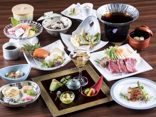 | 석식 | 있음 / 일식과 양실을 조화시킨 가이세키 요리 / 특이사항 : 이용 시간 : 18:00, 18:30, 19:00 시간대 중 선택 ※ 라스트오더 20:30까지 |
