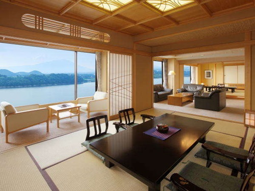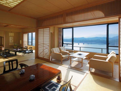 -모리오카 츠나기 온천 호텔 시온은 츠나기 온천 마을의 명물인 고쇼 호수를 호텔 로비에서부터 전 객실에서 전망으로 감상할 수 있는 온천 호텔로 노천온천 켄오유, 히노유에서도 온천을 즐기며 고쇼 호수의 전망을 감상할 수 있다. 호텔 시온의 대부분의 노천 온천에는 지붕이 설치되어있어 안정감이 있고 어느 정도 비가 오는 날에도 문제없이 이용할 수 있다. 온천의 온천 수로는 원천 수를 보유하고 있어 100% 천연 온천을 사용하고 있다. 식사로는 식재료의 보고인 이와테현의 신선한 식재료를 사용하며 해산물 요리부터 육류 요리까지 다양한 요리를 맛볼 수 있다. |
