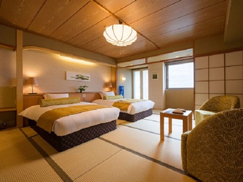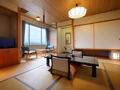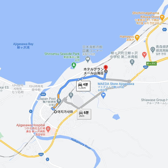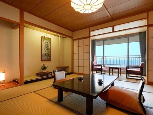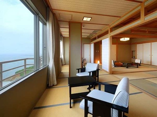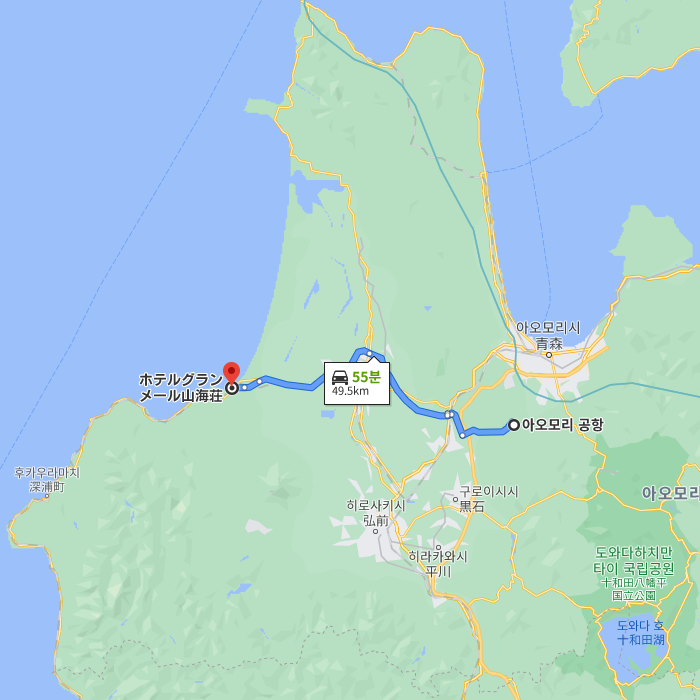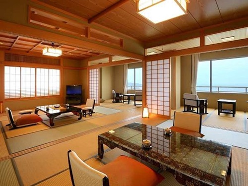 -호텔 그랑메르 산카이소는 고대 화석 해수 온천으로 유명한 호텔이다. 화석 해수 온천이란 삼십만년전 지층에 봉입된 해수가 대지의 열과 해수의 힘에 의해 온천으로 용출되는 것을 말한다. 이러한 해수 온천을 즐기며 석양이 지는 광경을 보며 힐링을 할 수 있는 호텔이다. 객실에서는 바다가 내려다 보이는 바다 전망의 객실과 쯔가루 지방의 후지산이라 불리는 이와키산을 바라볼 수 있는 산 전망의 객실로 나뉘어져 있다. 객실 타입으로는 화실, 화양실, 양실을 취향에 맞게 이용할 수 있다. 식사로는 주방장 특제 요리로 일본의 바다와 산지의 식재료를 맛있게 즐길 수 있다. |
