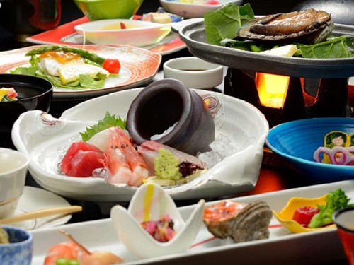 | 석식 | 있음 / 가이세키 정식 / 운영시간 18:00 ~ 21:00 / 특이사항 : ※ 별도 플랜 전복구이 또는 규 스테이크가 메인이 가이세키요리 |