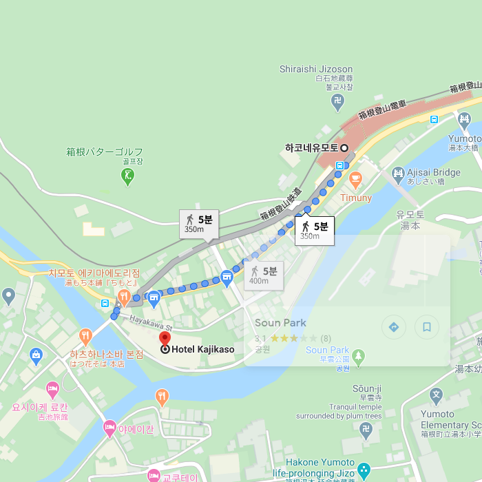 -카지카소는 하코네유모토의 맑은 물가을 따라 세워진 근대건축의 순화풍 료칸이다. "여유"를 테마로 한 넓은 관내 공간과 진심어린 서비스, 산해진미를 느낄 수 있는 호화로운 요리는 마음의 행복과 풍족감을 느끼게해준다. 하코네유모토역에서 도보로 단 5분거리인 최고의 접근성과 관광에도 최적의 입지를 자랑하고 있다. 자가원천의 풍부한 유량으로 2층과 6층에는 대욕장과 노천온천이 갖추어져 있어 각양각색의 온천욕을 즐길 수 있다. 객실은 일반화실에서 전용노천온천이 포함된 객실까지 종류가 다양하며, 기호에 맞게 선택이 가능하다. |