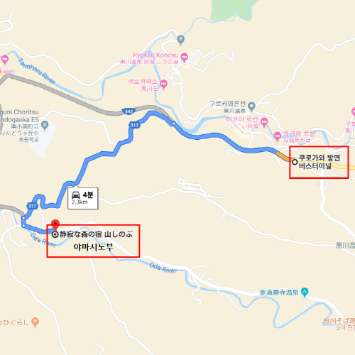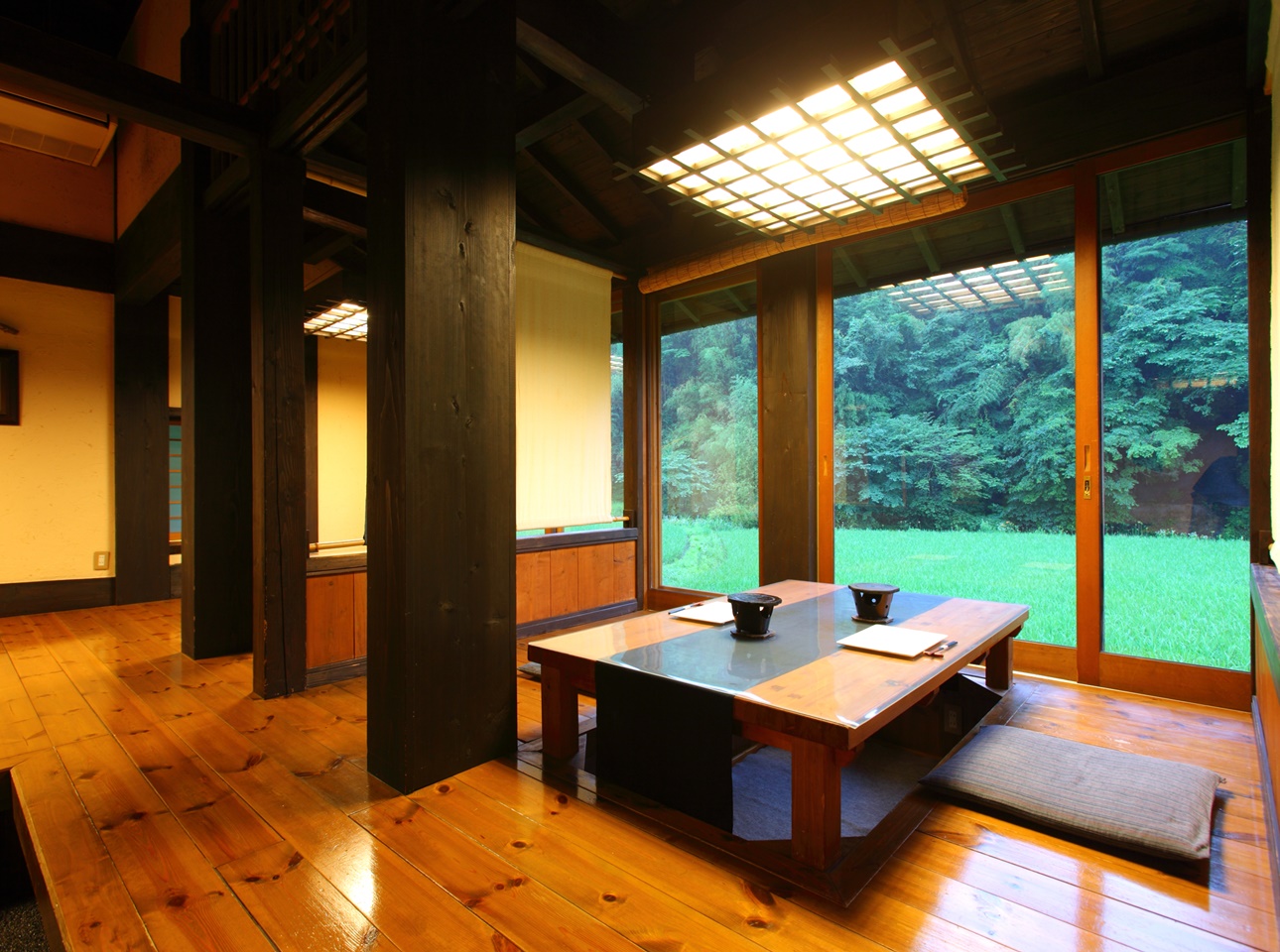 쿠로가와 온천(黒川温泉)에서 자동차로 5분 거리에 위치한 온천지인 오다 온천(小田温泉)의 야마시노부는 복잡한 시내에서 벗어나 느긋하게 자연을 즐길 수 있는 료칸이다. 료칸 주위의 자연을 느낄 수 있도록 전망대와 테라스가 갖춰져 있어, 온천을 이용 후 휴식을 취하는 게 가능하다. 약 1500평 정도 되는 료칸 내 정원은 바쁜 일상 속에서 잊고 지냈던 여유를 느낄 수 있다. 일본 전통 취사, 난방 장치인 이로리에선 무료로 마실 수 있는 민속주가 준비되어 있으니, 저녁 식사 후 민속주 한잔으로 기분전환을 할 수 있다. 넓은 정원에서 느긋하게 산책을 하고 전망대에서 밤하늘을 올려다보면 그동안 쌓였던 스트레스를 잊을 수 있다. 조용한 곳에서 느긋하게 휴식을 취하길 원하는 사람에게 이 료칸을 추천한다. |