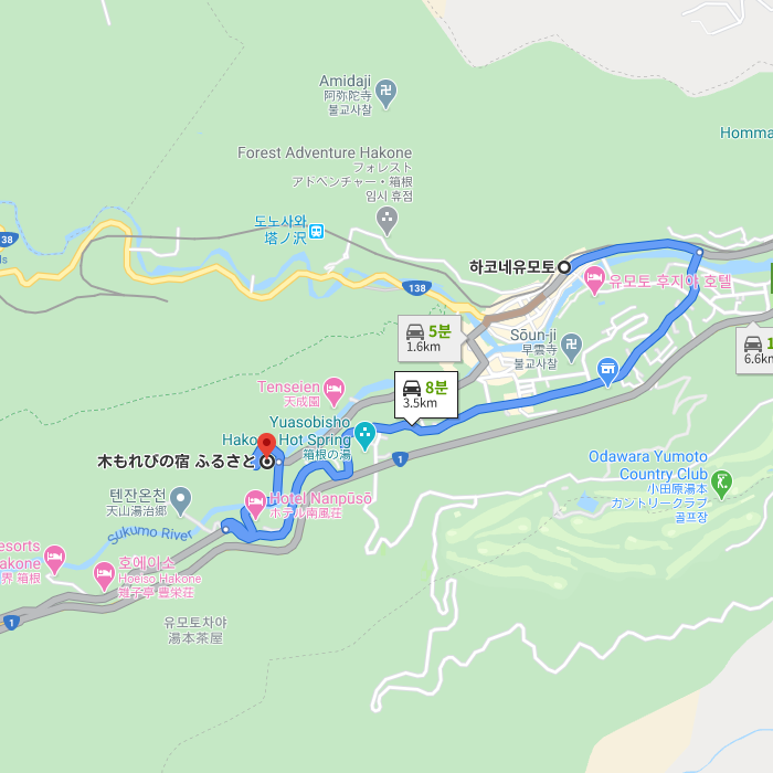 -코모레비노야도 후루사토는 스쿠모가와 강과 유사카야마 산으로 둘러싸여 도시의 복잡함에서 벗어나 조용하게 자연을 느낄 수 있는 료칸이다. 총 객실 수 8실 목조 건물로 양실, 화양실, 화실 등 다양한 타입으로 구성되어 있으며, 타입에 따라 객실 내에 실내 온천 또는 전동 안마의자 등이 구비되어 있어 여행의 지친 피로를 풀 수 있다. 코모레비노야도 후루사토는 3년 연속 인기 온천 료칸에 뽑힌 호텔 오카다와 연계된 료칸이기 때문에 호텔 오카다의 13개의 다양한 온천과 족욕탕도 무료로 함께 즐길 수 있다. 하코네 유모토 온천을 사용, 성분은 알카리성 단순온천으로 피부를 아름답게 만들어 주는 효과가 있어 피부 미용에 관심이 많은 여성에게 적극 추천한다. 여성의 경우 색깔 별로 예쁜 유카타도 준비되어있다. |