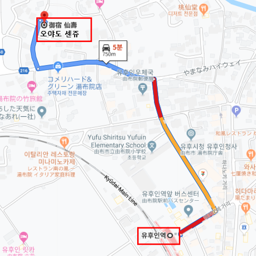숙박지 주변유후인역에서 차로 약 5분 소요 (도보 약 11분) |