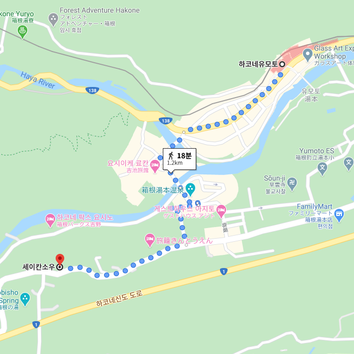 -하코네 유모토(箱根湯本)에 위치한 세이칸소는 가을에는 단풍을, 봄에는 푸른 녹음 속에 둘러싸여 노천온천을 즐길 수 있는 료칸이다. 총 객실 수는 9실로 루리(瑠璃), 코하쿠(琥珀), 쇼우죠(猩猩), 아사기(浅葱), 모에기(萌黄), 시온(紫苑), 토우오우(藤黄), 스오우(蘇芳), 미루(海松) 모든 객실 이름은 유명 소운지(早雲寺)의 승려 이름에서 따왔으며, 전 객실 노천온천이 포함되어 있다. 객실내 테라스의 노천온천은 유사카(湯坂) 산을 바로 보며 사계절의 변화를 몸으로 느끼며 여유롭게 온천을 할 수 있다. 객실에서 조금 떨어진 전세 노천온천탕은 대나무 잎이 상쾌한 바람에 스치는 듯한 소리를 들으며 프라이빗한 공간에서 온천을 즐길 수 있기 때문에 부부 또는 커플에 적극 추천한다. 유모토 온천의 성분은 알카리성 단순온천으로 신경통, 근육통, 관절통, 오십견, 타박상 등에 효과가 뛰어나다. 조식, 석식 모두 객실 내에서 식사 가능하다. 석식은 창작 가이세키 요리로 조미료에 의존하지 않고 각각의 재료의 맛을 그대로 살려서 조리하였다. 맛뿐만 아니라 눈으로 즐기고 향을 느끼며 오감을 사용해 새로운 가이세키 요리를 경험해 보자. |