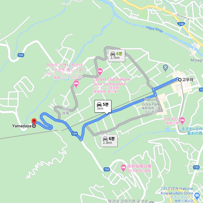 -하코네 고라(強羅)지역에서 60년의 역사를 자랑하는 시라유노야도 야마다야는 전 객실에서 하코네 외륜산의 풍부한 경치가 한눈에 들어와 도시의 복잡함에서 벗어나 조용히 휴식을 취할 수 있는 료칸이다. 시라노유노야도 야마다야의 온천 성분은 산성(칼슘, 마그네슘) 황산, 염화물 온천수로 효능은 신경통, 근육통, 관절통, 피로회복, 치질, 냉증 뿐만 아니라 악성 종양, 심장병, 호흡부전, 신부전, 고도 빈혈 등에도 효과가 좋아 숙박객과 지역 주민들에게도 호평을 받고 있다. 특히 노천탕은 일본에서 유일무이하게 200년 전통의 하코네 목공예 방식인 "요세키 세공"으로 지어져서, 나무 자연의 향을 맡으며 온천을 즐길 수 있다. 식사는 조, 석식 모두 객실 내에서 외륜산을 바라보며 식사가 가능하며, 식자재에도 신선한 재료만을 엄선하여 제철의 맛을 느낄 수 있도록 준비하고 있다. 근처 관광지로는 후지 사파리 파크(富士サファリパーク), 고텐바 아울렛(御殿場アウトレット), 어린왕자 뮤지엄(星の王子様ミュージアム) 및 여러 미술관 등의 관광명소가 있어 가족, 연인 모두 추천한다. |