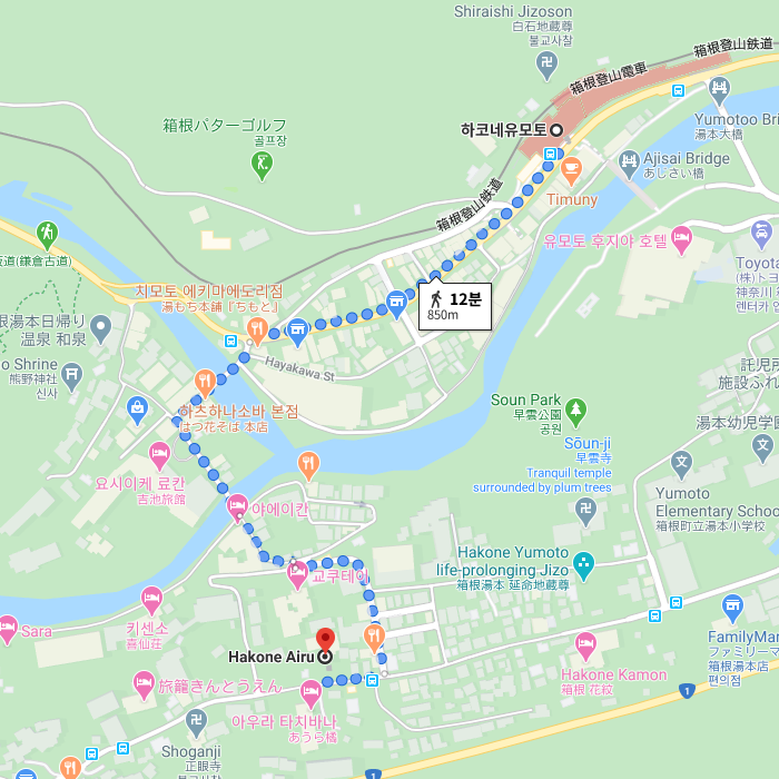 -일본의 유명한 온천지인 하코네의 하코네유모토역에서 도보 7분이면 갈 수 있는 하코네 아이루는 역 근처에 위치하여 교통편이 좋은 2017년 12월에 개장한 료칸이다. 아이루(藍瑠) 라는 이름은 일본고래의 색인 남색(古来)과 자색을 띤 남색(瑠璃色) 두 가지 색에서 유래되었고, 또한 아이루는 인도네시아에서 물이란 의미가 있어, 하코네 아이루는 하코네의 맑은 물, 깊은 청색을 테마로 한 호텔이다. 남국을 이미지 하여 호텔 내부의 조명이 전체적으로 약간 어둡게 되어있는데 이로 인하여 몽환적인 분위기를 자아낸다. 전 객실에 노천온천이 갖춰져 있어 언제든지 온천에 몸을 담글 수 있고, 체크인 후 언제든지 이용 가능한 대욕장노천온천도 있으니 언제 어디서나 온천을 만끽할 수 있다. 지역의 신선한 식재료를 듬뿍 사용한 요리는 입을 즐겁게 한다. 하코네의 전경을 바라보며 느긋하게 온천을 즐길 수 있는 몽환적인 공간 하코네 아이루는 연인은 물론 가족여행으로도 추천하는 료칸이다. |