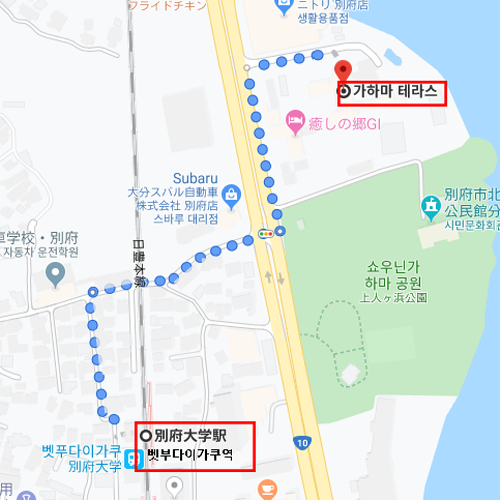 숙박지 주변벳부다이가쿠역에서 도보 약 7분 소요 |