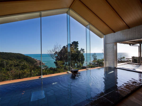 - 간사이에서도 해산물과 온천 지역으로 와카야마(和歌山)에 위치한 큐카무라 난키카츠우라는 일본의 유명 체인 온천 호텔이다. 큐카무라 호텔의 특징은 객실내 오션 뷰는 물론이며, 온천을 할 때에도 전망을 고려한 디자인으로 대욕장의 통유리 창 넘어 보이는 바다와 일출이 매우 아름답기로 소문난 호텔이다. 총 객실 수는 50실 전 객실 금연으로 화실, 화양실, 양실 다양한 객실 타입으로 커플 여행은 물론이며 가족 여행 시에도 적합한 객실을 보유하고 있다. 호텔 내의 대욕장과 노천온천은 모두 천연 온천으로 나트륨 염화물 온천수로 화상, 근육통, 피로회복, 피부병, 부인병 등에 효과가 뛰어나기 때문에 여행에 지친 피로를 바다를 바라보며 온천을 즐길 수 있다. 호텔 근처 관광지로는 세계 문화 유산에 등재된 구마노고도(熊野古道) 순례길이 최근 트레킹 코스로 많은 사람들이 찾는 곳이다. 간사이 지역 여행을 계획 중이며 렌터카를 이용 예정이라며, 한적하게 온천을 즐기며 해산물 요리를 맛볼 수 있는 큐카무라 난키카츠우라를 추천한다. |