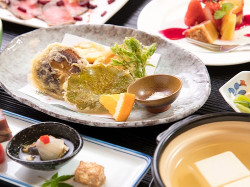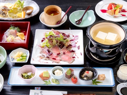 | 석식 | 있음 / 가이세키 정식, 수제 두부요리를 메인으로 한 일식 정식 / 운영시간 18:00 ~ 18:30 / 특이사항 : 식사처 혹은 객실 내 식사 ※ 선택하신 플랜에 따라 식사 장소에 변동이 있을 수 있습니다. |