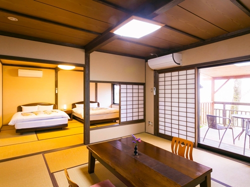 쿠로카와 온천에서 차로 약 10분 거리의 아소 숲속 고즈넉한 곳에 있는 료칸 「텐가 산소」는 여유로운 넓이의 별채형 객실 단 6곳으로 이루어진 소규모 료칸이다. 객실 내 포함된 실내 온천은 원천수를 그대로 흘려보내는 카케나가시 방식으로 성인 4~5인도 느긋하게 입욕이 가능할 정도로 넉넉한 공간을 자랑한다. 료칸 내 가장 높은 지대에 위치한 전망 반노천 전세탕은 아소 자연의 풍광을 온천욕과 함께 즐기는 호사스러운 경험이다. 설치된 케이블카를 이용하여 산 정상의 전세탕까지 편리하게 오갈 수 있는 것도 장점이다. 온천욕을 마치면 객실의 테라스에서 아소 숲의 경치에 녹아들 수 있다. 쿠로게 와규를 비롯한 구마모토의 고급 식재와 현지의 신선한 식재를 사용한 가이세키 요리 또한 텐가 산소에서의 프리미엄한 경험에 한 장을 더한다. 특별한 추억을 원하는 친구, 연인 간의 여행은 물론 3세대 이상의 가족여행에도 추천하고 싶은 료칸이다. |