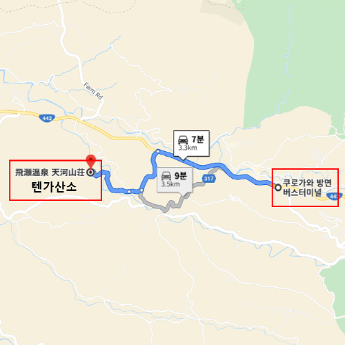 | 가족탕 - 실내온천 | 있음 / 운영시간 06:00 ~ 23:00 / 특이사항 : 9:00~15:00 사이는 청소로 이용 불가 전망 전세탕 : 텐가산소의 가장 높은 지대에 위치한 전망 전세탕으로 설치된 케이블카를 타고 편한 이용이 가능 ※예약제 아님 |